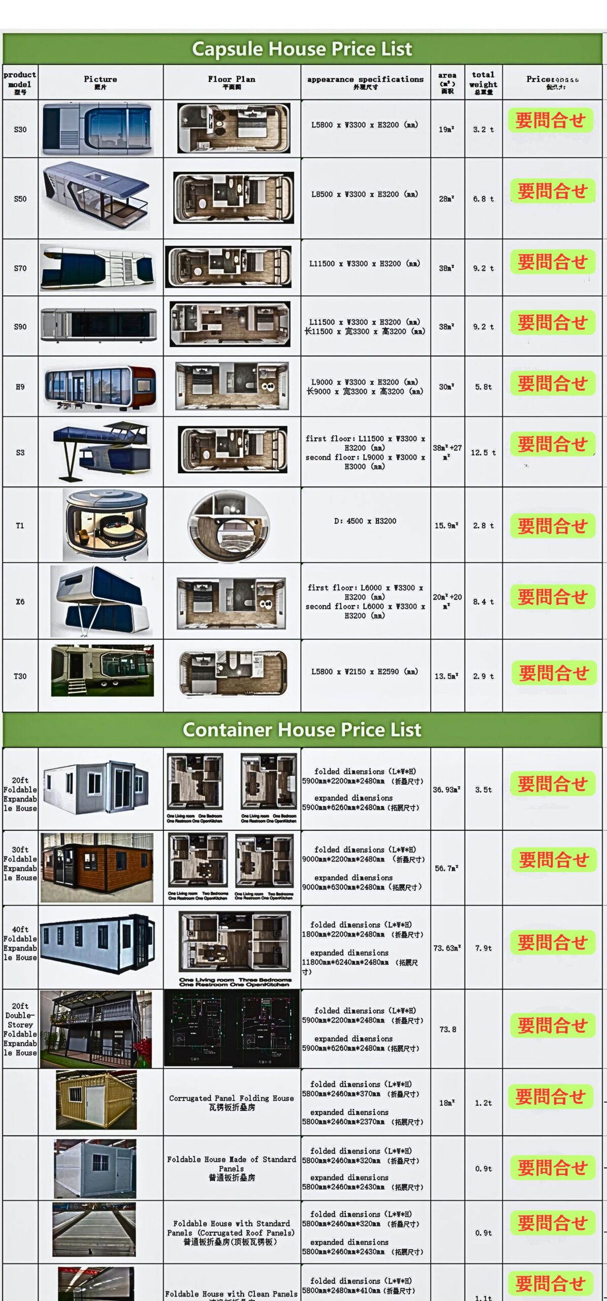 モジュールハウス サイズカタログ