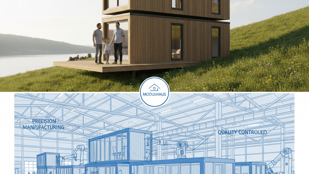 モジュールハウスとは、工場で部屋単位や構造単位の「モジュール」(箱型のセクション)をあらかじめ製作し、現地に運んで組み立てる住宅のことです。レゴブロックのようにモジュールを組み合わせることで完成します。英語では「modular home」や「modular building」と呼ばれ、プレハブ住宅の一種ですが、単なる簡易プレハブとは異なり、恒久的な住宅として設計されます。