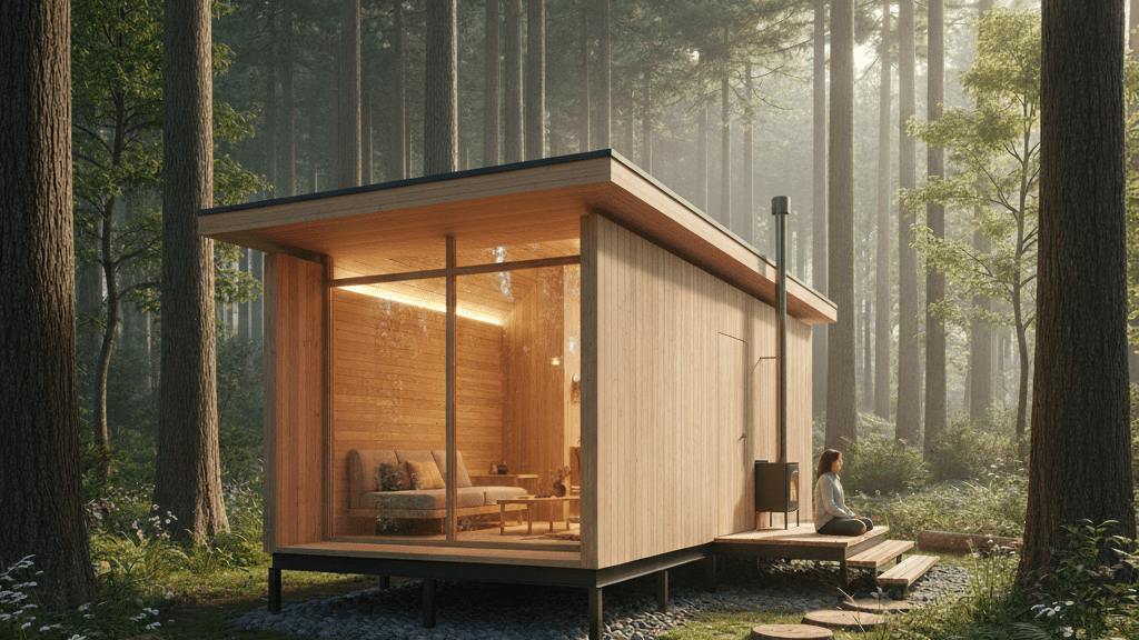 庭先に置く、至高の書斎。吉野杉の調湿作用と香りが、集中力とリラックスを同時に高めます。